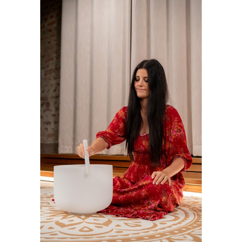 CSBM12F3Le Crystal Singing Bowl Meinl Sonic Energy, smerigliate di bianco e realizzate in quarzo di elevata purezza, creano un'aura molto piacevole grazie al loro suono e al loro design. Il loro suono rotondo e duraturo si diffonde quando delicatamente picchiettate o strofinate, facendo percepire l'energia in tutto l'ambiente circostante. Tutte le Crystal Singing Bowls vengono fornite con un anello di silicone per evitare possibili urti e garantire la migliore risonanza.Le Crystal Singing Bowls possono essere utilizzate per diversi scopi: guarigione dei chakra, meditazione, terapia del suono, yoga, miglioramento del Fengshui domestico, regolazione dello stato emotivo o anche per decorare gli ambienti. Caratteristiche:Realizzata in quarzo di elevata purezzaRisonanza estremamente duratura12Ó / 30 cm di diametroNota: F3 - Chakra del CuoreIntonazione:A4/a' = 440 Hz MEINL2025