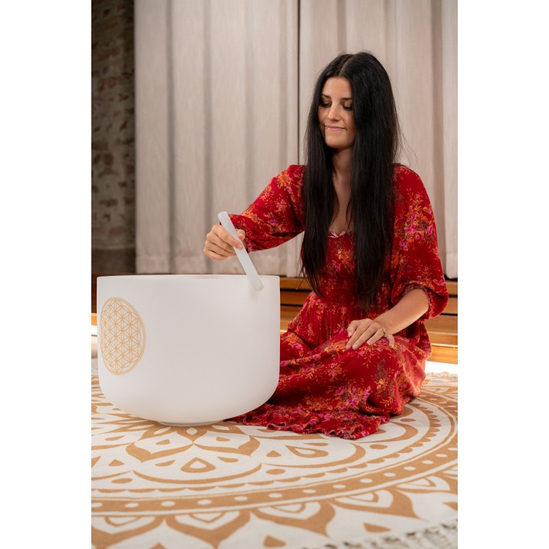 PCSB16FOLLe campane tibetane Meinl Sonic Energy Crystal Singing Bowl realizzate in quarzo di elevata purezza creano un'aura molto piacevole con il loro suono e il loro design. Il tono sferico di lunga durata si diffonde quando la campana tibetana viene picchiettata o strofinata delicatamente in modo che l'energia possa essere percepita in tutto l'ambiente circostante. Tutte le campane tibetane in cristallo vengono consegnate con un anello in silicone per evitare possibili urti e garantire la migliore risonanza. Puoi usare le campane tibetane di cristallo per una varietö di scopi: guarigione dei chakra, meditazione, terapia del suono, yoga, miglioramento della tua casa Fengshui, regolazione del tuo stato emotivo o anche per decorare una stanza.Frequenza del fiore della vita: 128 Hz, ha un suono adatto in ogni circostanza, che si rivolge a tutti i chakra. Rafforza l'amore incondizionato per noi stessi e per gli altri. La sua frequenza anche chiamata vibrazione curativa e ha un effetto calmante ed equilibrante.Diametro 16 / 40cmNota: C3 MEINL2025