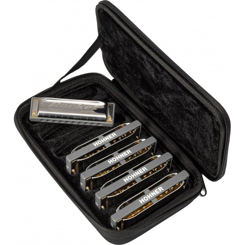 Pack di 5 armoniche Rocket nelle tonalità C, G, A, D e BB. Include una custodia. Design ergonomico con lati arrotondati per il massimo comfort. Design del corpo migliorato per aumentare la pressione e garantire il...