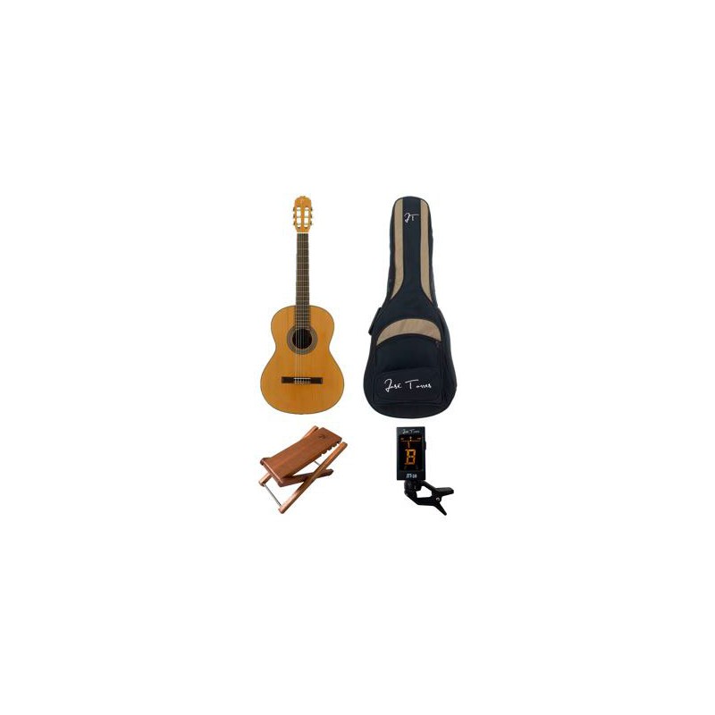 José Torres Student Pack. Pack composto da chitarra classica JTC-5S finitura opaca. Borsa imbottita JTB-10 per chitarra classica di 3 millimetri poliuretano ad alta densità, equivalente a 6mm di poliuretano morbido.Acc