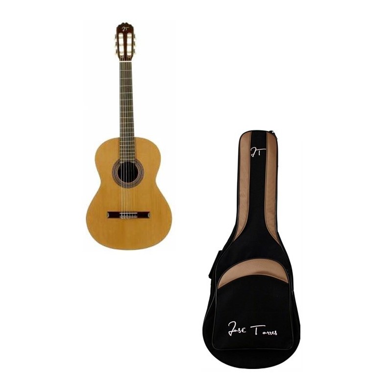 Pack Jose Torres composto da chitarra classica JTC-10 e borsa imbottita JTB-10. JTC-10: Chitarra classica. Top solido in cedro. Fasce e fondo in mogano. Manico in mogano. Tastiera in palissandro indiano. Capotasto in...
