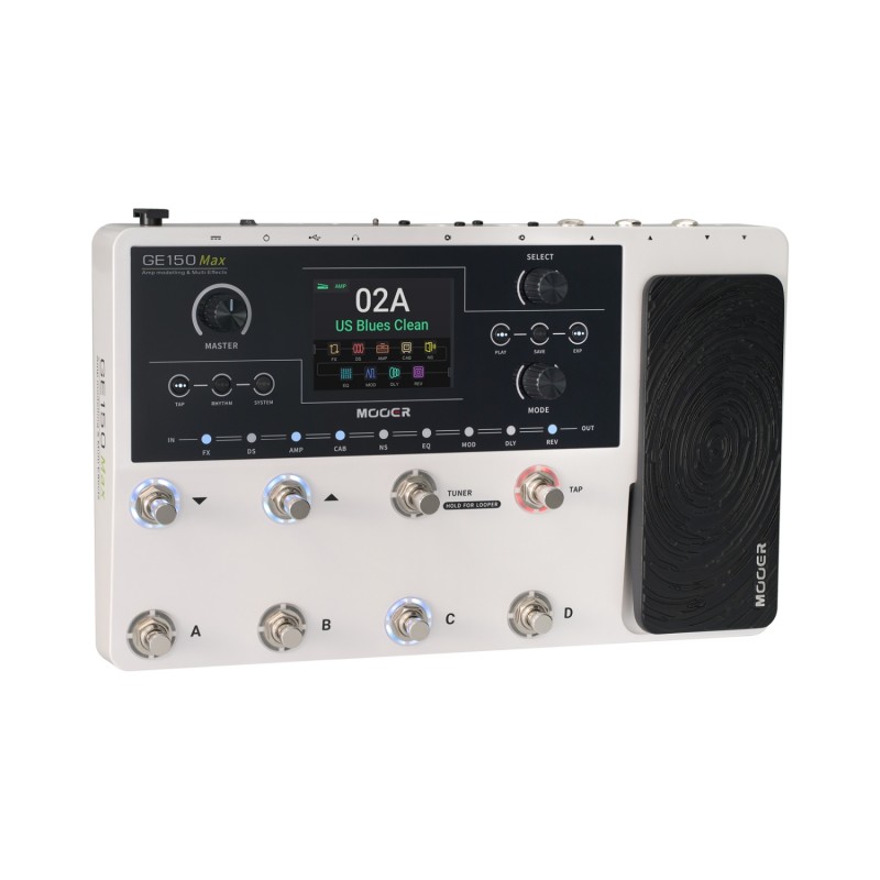 GE150 Max è l'evoluzione più potente del classico GE150, con notevoli miglioramenti nell'interfaccia di controllo e nelle capacità di elaborazione audio. Ora include 8 footswitch, che offrono una gestione molto più comoda dei preset dal vivo. La sua nuova modalità CTRL consente di assegnare interruttori a moduli specifici all'interno di ogni preset, ottenendo un controllo più dettagliato e flessibile.