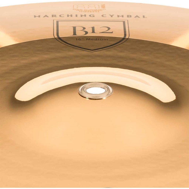 'Piatti crash professionali della serie B12 MA-B12-16M di peso medio e da 16''. I piatti da marcia della serie B12 sono prodotti meccanicamente in Germania con una lega B10. Sono modellati, poi accordati e calibrati...