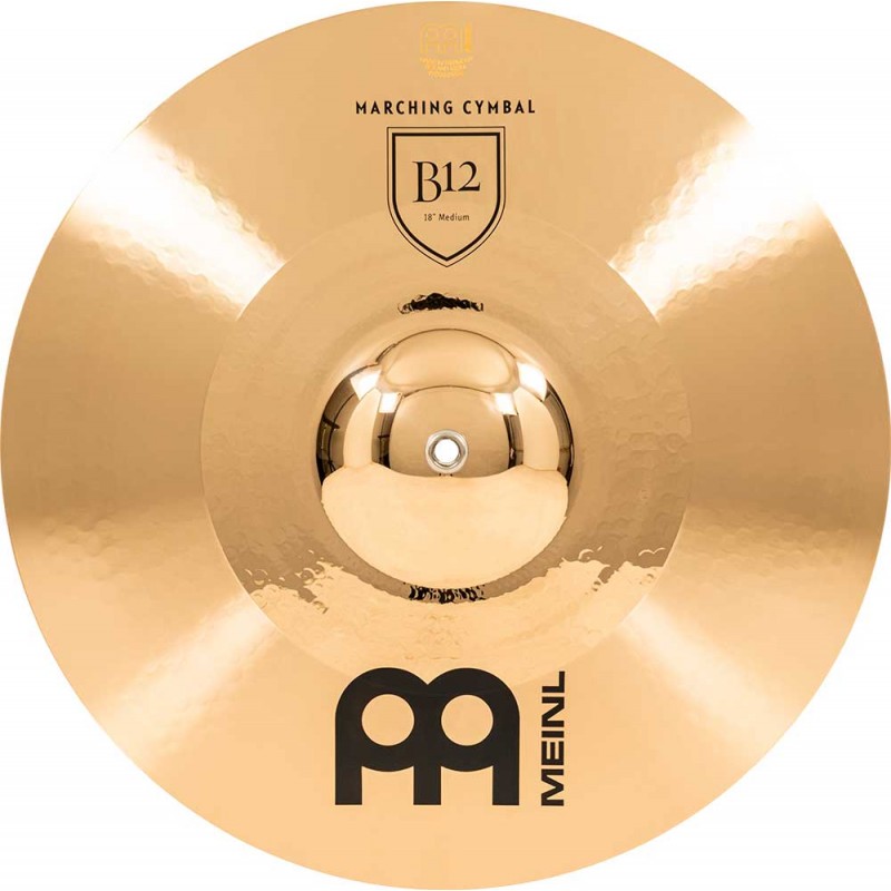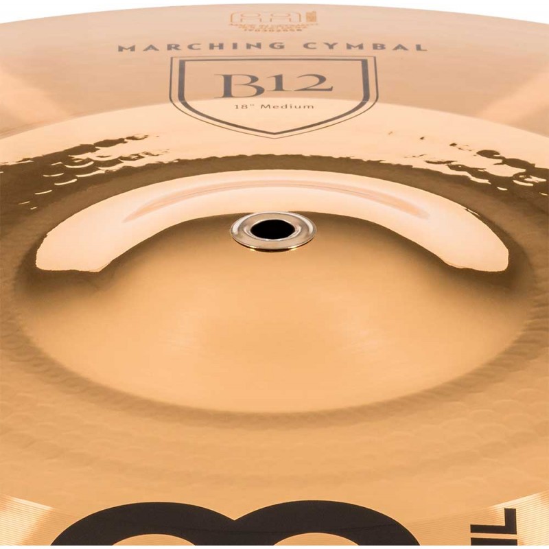 'Piatti crash professionali della serie B12 MA-B12-18M di peso medio e da 18''. I piatti da marcia della serie B12 sono prodotti meccanicamente in Germania con una lega B12. Sono modellati, poi accordati e calibrati...