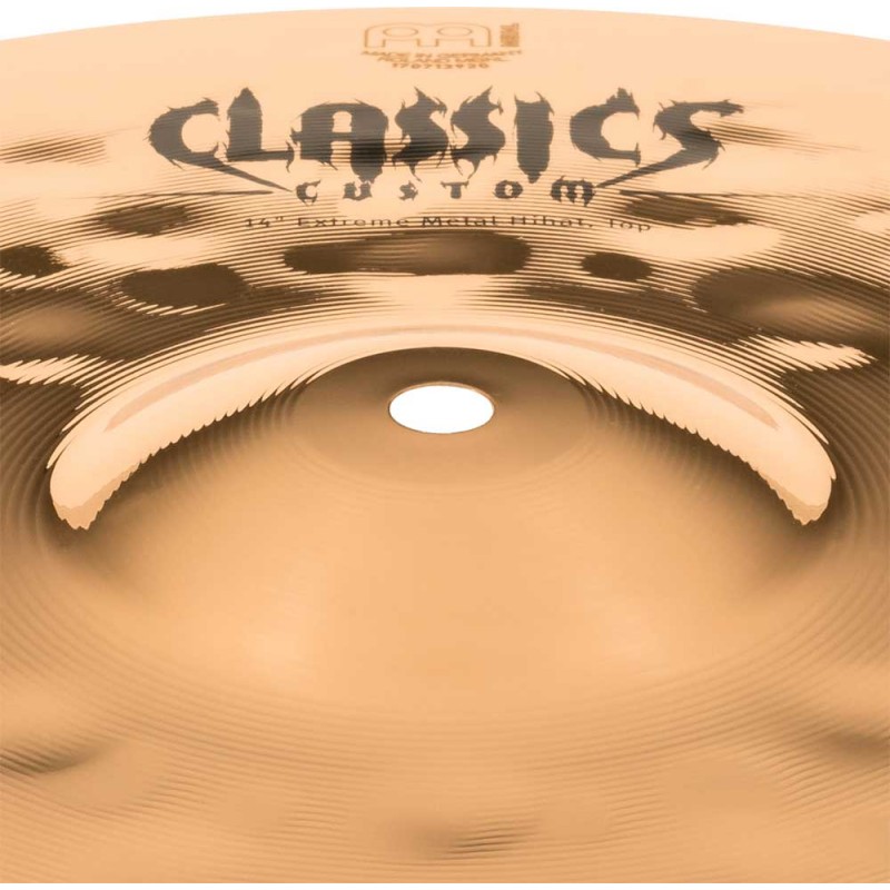 'Hi-hat 14'', Serie Classics Custom Extreme Metal. I piatti della Serie Classics Custom Extreme Metal sono prodotti meccanicamente in Germania con una lega B10 e con un peso leggermente superiore a quello dei Classics...