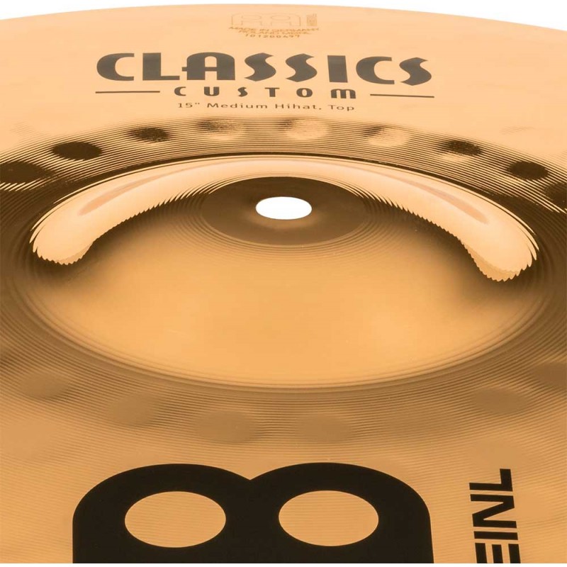 'Hi-hat 15'' Medium, Serie Classics Custom. I piatti della serie Classics Custom sono prodotti meccanicamente in Germania con una lega B10. Il processo comporta varie tecniche, sia di pressatura che di martellamento...