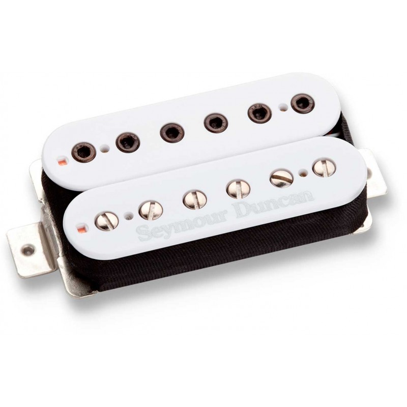 11103-80-W The Screamin’ Demon is a medium output humbucker pickup designed to deliver crisp 80s sizzle with a scooped midrange. The idea was to create a pickup that had the articulate airiness of an old-school P.A.F., but with more growl and sizzle. We designed slightly overwound coils paired with an alnico 5 bar magnet and a mix of pole pieces that included one row of standard adjustable screws and one row of shorter Allen head screw. What you get is a big, open tone, with a treble emphasis that keeps your pick attack sounding articulate at any level of distortion. Originally designed as a bridge pickup, the 10k Screamin’ Demon also works great as a neck pickup when paired with a high output humbucker in the bridge. Pair the Screamin’ Demon bridge with the 59 or Jazz model neck humbuckers for a great 80s setup. Hand built in Santa Barbara, CA, the Screamin’ Demon medium output humbucker pickups use an alnico 5 bar magnet, nickel silver bottom plate, 4-conductor lead wire for multiple wiring options, are vacuum wax potted for squeal-free performance, and are available in standard humbucker or Trembucker spacing.