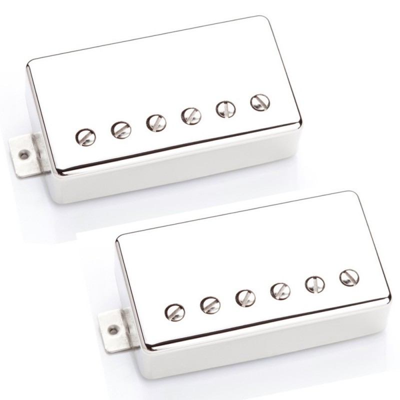 11108-20-Nc Un set calibrato dei PAF più fedeli disponibili, costruito esattamente nel modo in cui Seth Lover intendeva un tono morbido e dolce. I pickup humbucker con uscita vintage Seth Lover sono la scelta perfetta per i giocatori che vogliono trasformare un corpo solido o semi-vuoto in una classica macchina rock cantante. Nient'altro che cielo blu. Il modello di collo Seth Lover ti dà un tono morbido ma articolato colpendo il perfetto equilibrio di caldo, pieno di fascia bassa e un piacevole dolce triplo. Il magnete alnico a 2 barre aiuta a rendere più uniforme la risposta di fascia alta, mentre le bobine di uscita vintage mettono in risalto il ricco contenuto armonico di questo pickup. Le note singole avranno quella perfetta qualità di canto e la copertina in argento nickel senza vaso crea un tono quasi da pianoforte e una sensazione percussiva. Il modello di ponte Seth Lover ti dà quel tono caldo, arioso e aperto, colpendo il giusto equilibrio di calore di fascia bassa con una parte superiore liscia ma articolata. Gli accordi avranno un suono pieno e aperto e le note singole avranno un suono morbido ma articolato. I pickup humbucker con uscita vintage Seth Lover sono accuratamente realizzati a mano a Santa Barbara secondo le specifiche esatte e originali di Seth Lover. I nostri stampi per bobine in butirrato sono creati dalla stessa fabbrica che ha costruito lo stampo PAF originale per Gibson. Altre caratteristiche chiave includono il nostro filo magnetico smaltato 42AWG appositamente fabbricato, copertura in nichel argento, magnete da 2,5 pollici alnico 2 bar, distanziali in metallo e acero lavorati su misura e piastra inferiore in argento nichel. Gli humbucker Seth Lover sono disponibili con fili conduttori intrecciati push-back a singolo conduttore corretti o con moderni conduttori a 4 conduttori per una maggiore capacità di divisione e cablaggio. Avvolgiamo ogni humbucker Seth Lover sulla bobinatrice originale Leesona di Seymour dalla prima fabbrica Gibson di Kalamazoo, MI., Per quell'inconfondibile tono vintage.