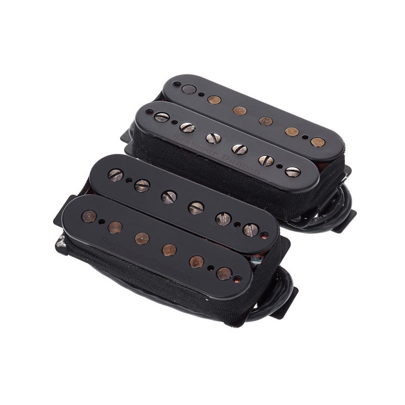 11108-95-B 6 string progressive metal players rejoice! This calibrated set of our Pegasus and Sentient medium output humbucker pickups deliver the perfect blend of articulation and aggression. The Pegasus/Sentient medium output humbucker pickup set offers progressive players the ultimate palette of modern metal tones. The Pegasus bridge was originally designed for extended range instruments. However, 6 string players immediately demanded we offer a version to call their own. It incorporates an alnico 5 bar magnet and custom winding specs. The goal was to deliver a warm, balanced, responsive, and lush tone for progressive metal. It’s a harmonically rich pickup with a prominent midrange and a focused low end. The high resonant peak makes for a sparkly top end and an incredible “bloom” on chords in high-gain situations. The responsive and accurate pick attack ensures that you will cut through any live mix and will have tight-tracking transients in a studio environment. Because the Pegasus is a moderate output pickup, it works as well for clean tones as it does for distorted tones. The Sentient neck delivers a balanced, versatile tone that fits right between the ’59 model and the Jazz neck pickup. You’ll get pristine cleans and fluid leads under high gain. The Sentient is a very articulate vintage output pickup with great dynamic response and a wide harmonic range. It works great for low tunings in all humbucker-equipped guitars. Hand built in our Santa Barbara, CA, factory, the Pegasus and Sentient medium output humbucker pickups both feature an alnico 5 bar magnet, nickel silver bottom plate, 4-conductor lead wire for multiple wiring options, and are vacuum wax potted for squeal-free performance.