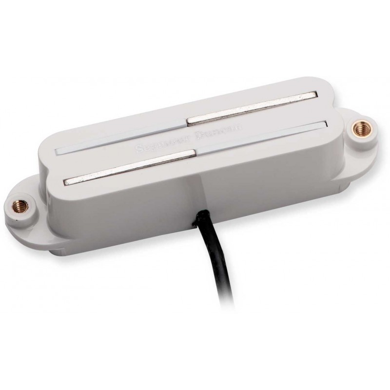 11205-14-W Single coil like sparkle with vintage output, and a hum-canceling split blade design to give you even sustain while bending notes. The Vintage Rails is a single coil sized humbucker with a unique split-blade design that is meant to be wired in parallel to give you a sparkly, vintage style single coil tone without the Strat hum. In the bridge position, this pickup will be tight and crisp, and will give you lots of vintage Strat snap. For added versatility, its 4-conductor lead-wire gives you the option of switching it into series wiring (using a push/pull or mini-toggle) for hotter, fatter humbucker tone. In the neck position, this pickup is great for all types of articulate rhythm playing. The vintage output wind keeps even the most clustered chords expressive and spanky. This pickup is a drop-in for any single coil pickup route. Hand built in Santa Barbara, CA, the Vintage Rails for Strat pickups come with a ceramic magnet, 4-conductor lead wire, and are wax potted for squeal free operation.