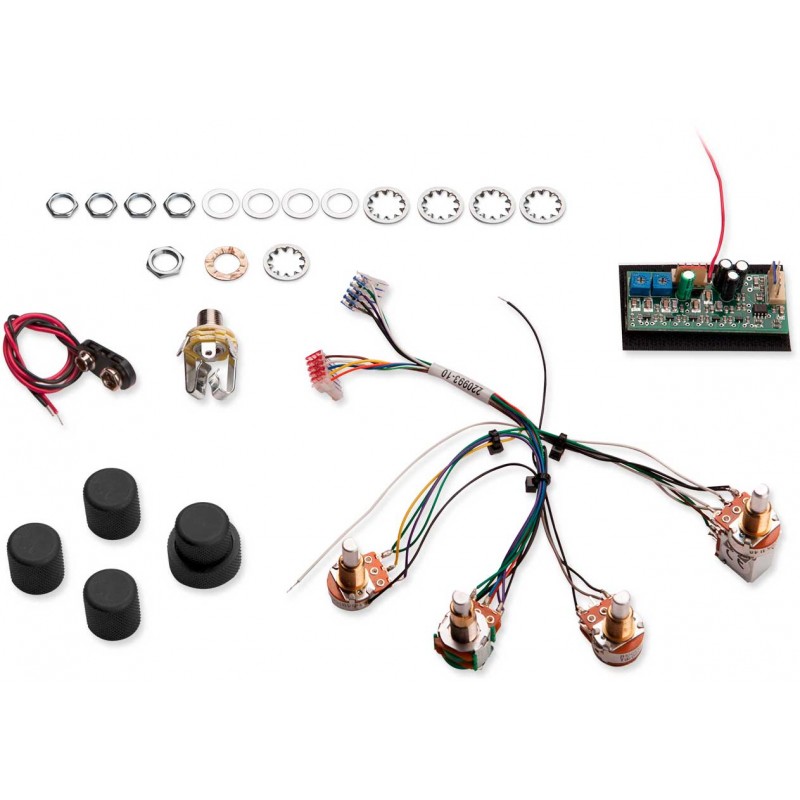 11993-06 We offer high-headroom, low-noise, 2-band and 3-band active onboard EQ preamps for use with both active and passive pickups. Each active bass preamp comes with high-quality potentiometers on a pre-wired harness, battery clip, and knurled black dome-style knobs. (volume/slap switch, blend, and concentric bass and treble controls for STC-2P and STC-2A) or four control knobs (STC-3A and STC-3P) and a single 9v battery in the control cavity. Two 9v batteries can be wired together in series for added headroom. We include all necessary mounting hardware: high-quality potentiometers on a pre-wired harness, battery clip, and knurled black dome-style knobs.