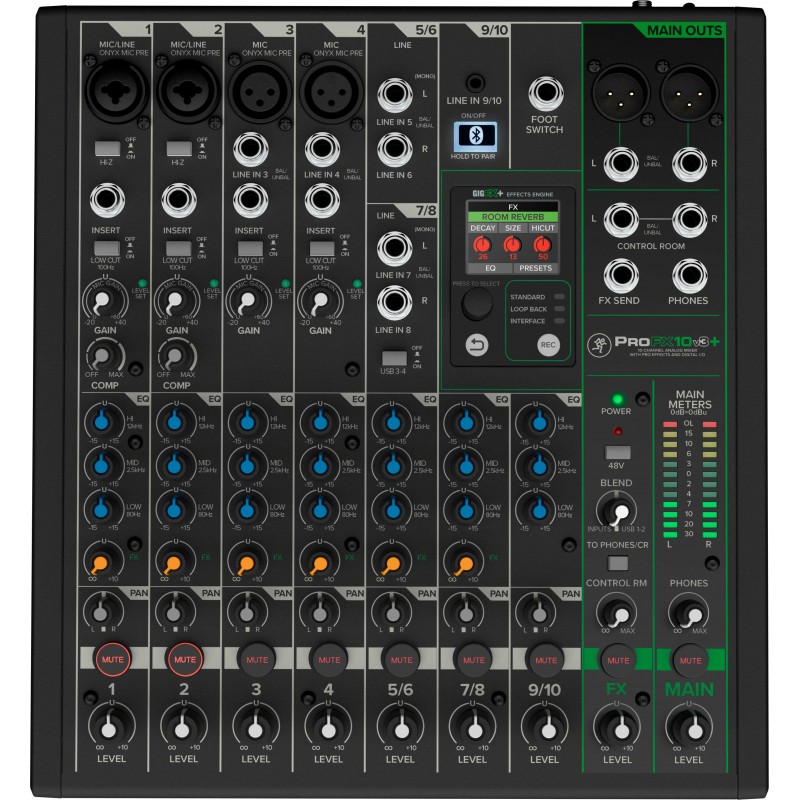 ProFX10v3 un mixer analogico compatto e uninterfaccia audio USB-C con funzioni di console di registrazione in studio. Dotato di elementi essenziali come la compressione con un solo pulsante, lEQ, gli interruttori Hi-Z e i filtri low-cut da 100 Hz, il fulcro perfetto per il vostro studio.Registrare, creare, trasmettere!Mackie ProFX10v3 un mixer analogico professionale a 10 canali e uninterfaccia audio USB-C con potenti miglioramenti per la registrazione di qualit in studio e lo streaming dal vivo. Catturate le vostre performance con i premiati preamplificatori Onyx, lequalizzazione dei canali e la compressione analogica. Gli effetti GigFX potenziati migliorano il suono, inoltre possibile modificare e salvare le preimpostazioni al volo tramite il display a colori. Passate da una modalit di registrazione allaltra per registrare flat o con effetti, oppure utilizzate la modalit loopback per lo streaming di videogiochi o la riproduzione di tracce di accompagnamento senza feedback. possibile anche portare i propri ospiti in podcast via telefono tramite Bluetooth su un canale dedicato. Con una connettivit semplice, un calore analogico e un motore FX potenziato, Mackie ProFX10v3 il fulcro perfetto per il vostro studio.Caratteristiche tecniche:- 4 preamplificatori microfonici Onyx con guadagno fino a 60 dB e prestazioni a bassissimo rumore.- Motore di effetti GigFX ad alta risoluzione- Display LCD a colori per la modifica e il salvataggio delle preimpostazioni degli effetti Interfaccia audio USB-C 2x4 24-bit / 192 kHz- Tre modalit di registrazione: Standard, Loopback e Interfaccia- Bluetooth bidirezionale per la riproduzione musicale e lintegrazione delle chiamate- Equalizzatore a 3 bande su tutti i canali- Compressione a una manopola sui canali 1 e 2- Gli interruttori Hi-Z consentono il collegamento diretto degli strumenti- Filtro low-cut a 100 Hz e alimentazione phantom a 48 V su tutti i canali microfonici- Ingresso stereo da 1/8' sui canali 9/10- Uscita cuffia con controllo indipendente del livello e del mix- Facile mix tra il monitoraggio delluscita del computer e lalimentazione senza latenza del mixer.- Software di registrazione Waveform OEM incluso- Leggendario design 'Built-Like-A-Tank- Solido telaio in acciaio- Robusta protezione laterale in ABSembalaje en mal estadoArtículo reembalado