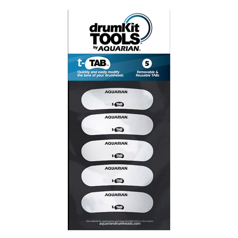 'TA1 T-TAB1Modificatori di suono per tamburiIl t-TAB un modificatore di suono della pelle che rende facile ''accordare'' il suono e la risonanza di qualsiasi tamburo per qualsiasi situazione esecutiva.Elimina frequenze specifiche e controlla la lunghezza di decadimento di un tamburo sperimentando il posizionamento dei t-TABS rimovibili e riutilizzabili in diverse posizioni sulla pelle del tamburo.I tecnici professionisti della batteria capiscono che ci sono momenti per regolare il suono della batteria utilizzando modifiche esterne. La regolazione dell'ATTACCO, del TONO e della RISONANZA di un tamburo pu˜ essere ottenuta regolando la vibrazione e la densitˆ della pelle.I t-TABS in plastica da 3'' hanno un leggero raggio che consente loro di adattarsi perfettamente alla circonferenza di un tamburo. Ma a differenza di altri mezzi di muting, i TAB in plastica da 10 mil possono essere suonati e posizionati ovunque, su pelli battenti o risonanti, ovunque sia necessaria una regolazione della frequenza.L'adesivo brevettato consente di rimuovere e riposizionare il t-TAB pi e pi volte. Pi TAB possono creare un effetto pi profondo. Cinque TAB (3 trasparenti e 2 sabbiate) incluse in ogni confezione.Focalizzare le frequenze della pelle del tamburoRidurre o regolare il decadimentoAumentare la chiarezza e l'attacco'