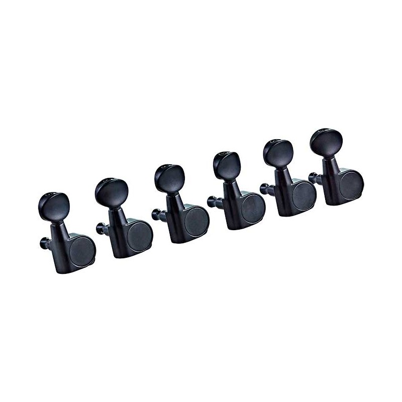OTMEG6L-GB Meccaniche per chitarra elettrica e acustica. Formato 6 in linea. Finitura nero brillante