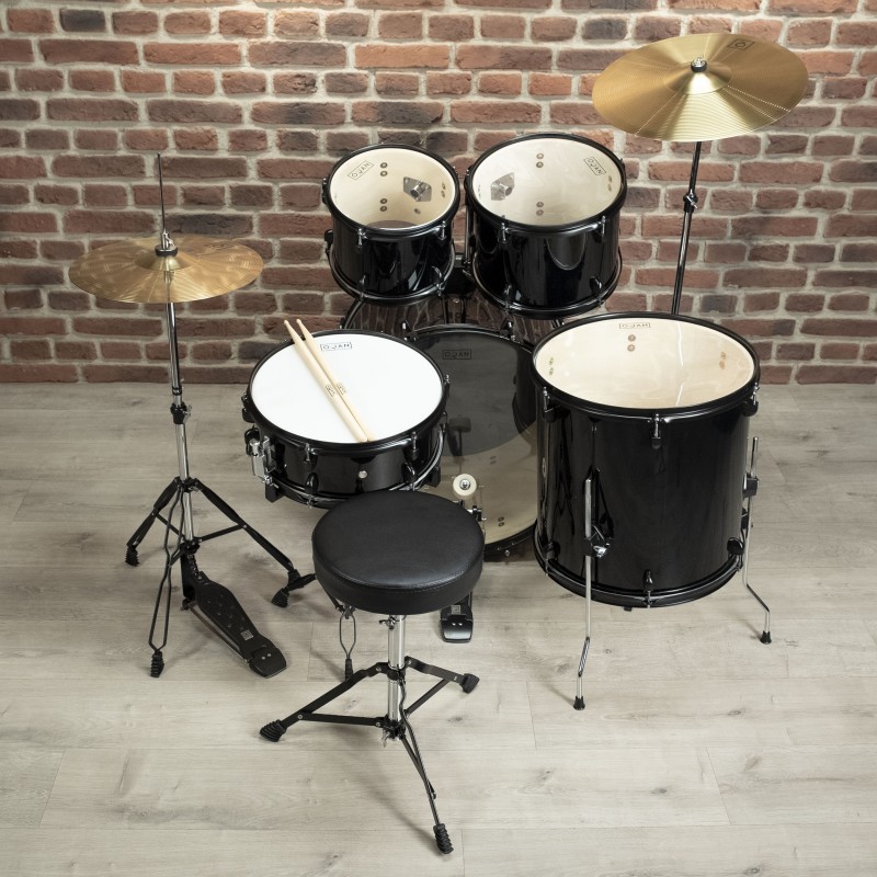 Batteria in legno di pioppo 6 strati. Composta da 22 x 16 grancassa, Timpano di 16 x 16, Tom, di 10 x8 e 12 x9 e Rullante 14 x5,5. Include piatti hi-hat e crash, supporto per piatti, supporto per charleston, supporto...