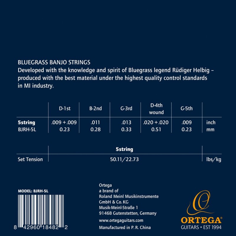 Corde per banjo Bluegrass, leggere, bronzo fosforoso, estremitˆ del loop, calibro corde .009/.011/.013/.020/.009, extra .009 e .020ORTEGA2024