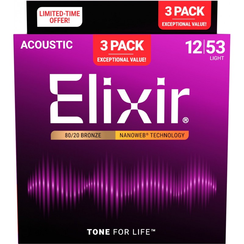 3-Pack. Unità limitate. 3 set di corde al prezzo di 2. Corde per chitarra acustica con avvolgimento in bronzo 80/20 (80% rame, 20% zinco). Offrono un suono brillante con una presenza espressiva e vivace. Rivestimento...