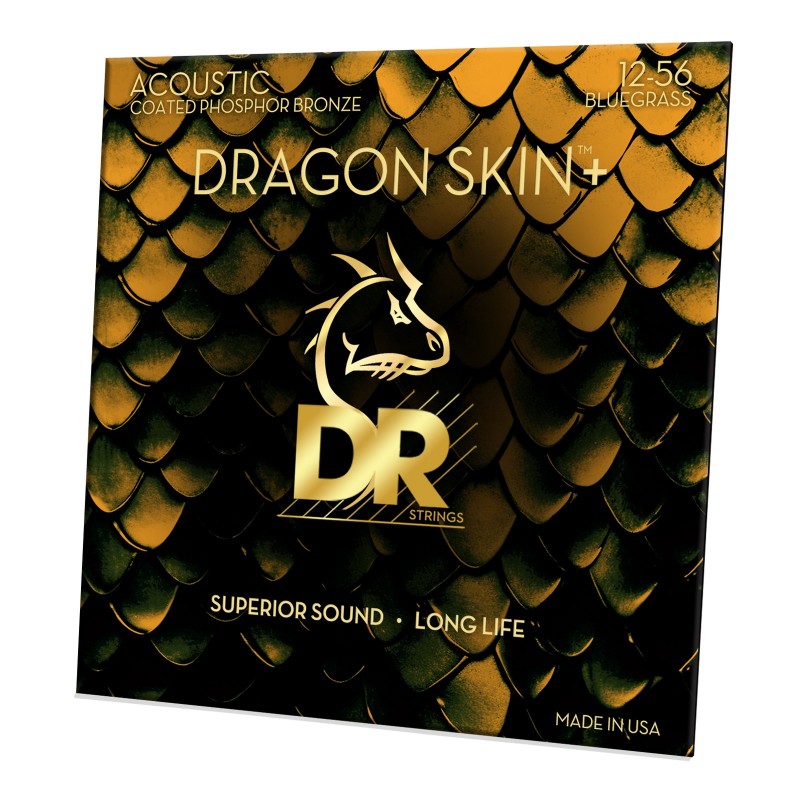 Acoustic Guitar 6-String Set. DRAGON SKIN+. Coated Phosphor Bronze Acoustic Guitar Strings. Bluegrass 12-56: 12, 16, 24, 34, 45, 56. Bluegrass. Round Core Wire with Accurate Core Technology on a Ball End with a Clear...