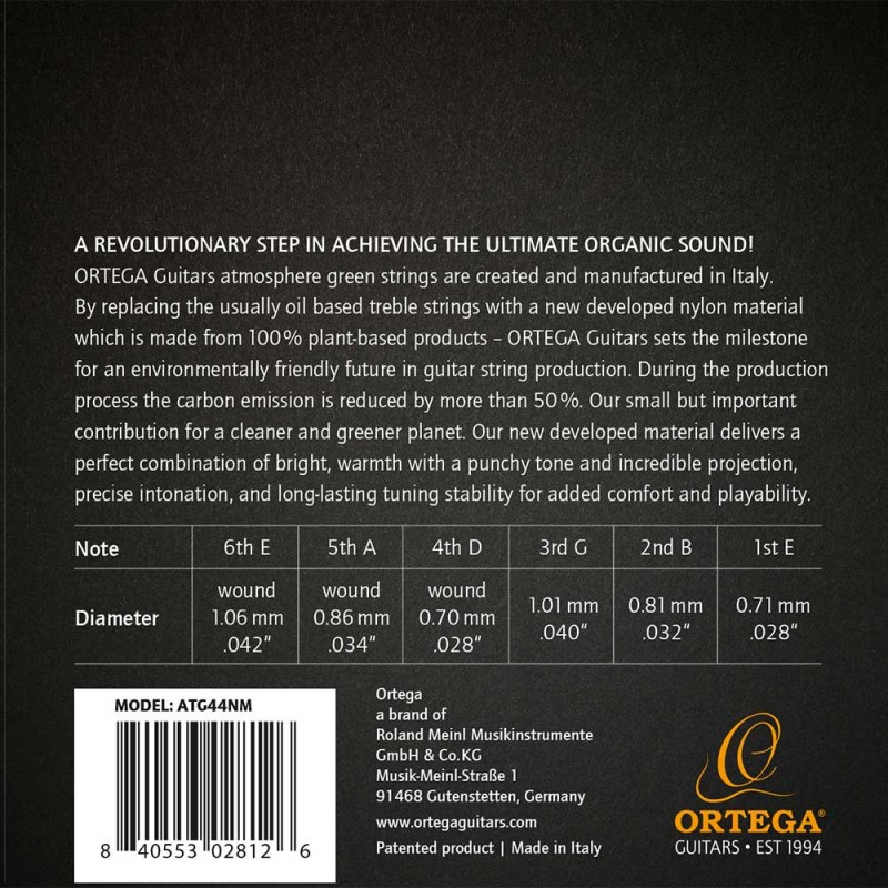 Le corde Ortega Guitars Atmosphere Green sono create e prodotte in Italia. Sostituendo le corde degli alti solitamente a base di olio con un materiale in nylon di nuova sviluppo realizzato con prodotti a base vegetale...
