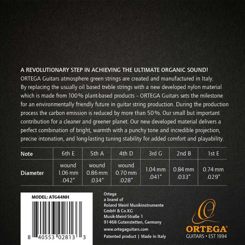 Set di corde per chitarra classica alta tensione ATG44NH. MADE IN ITALY!! Metodo di produzione 100% basato su fibra vegetale, senza nylon che contribuisce a ridurre le emissioni di carbonio del 50%. Con suono...