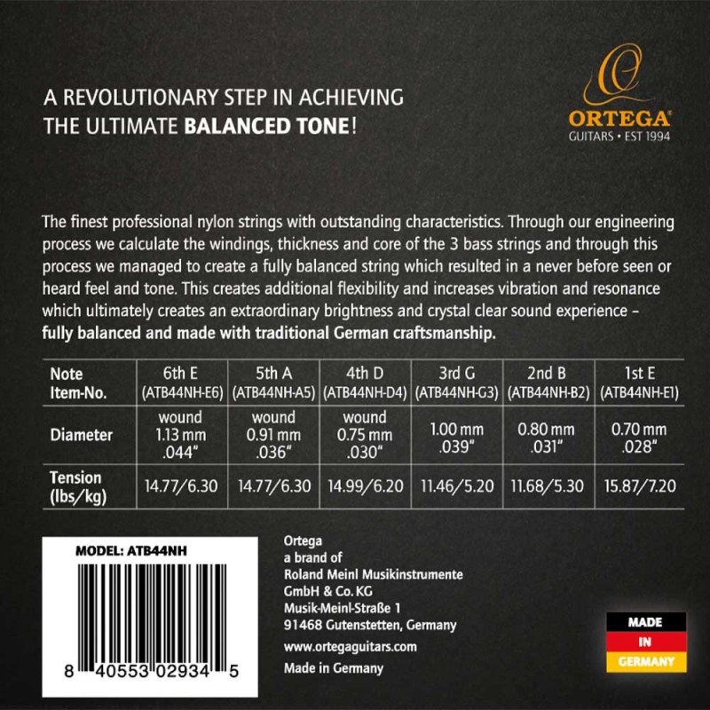 Set di corde bilanciato per chitarra classica alta tensione ATB44NH. Fatto in Germania. La sua tensione bilanciata garantisce una migliore accordatura e intonazione per i musicisti più esigenti.