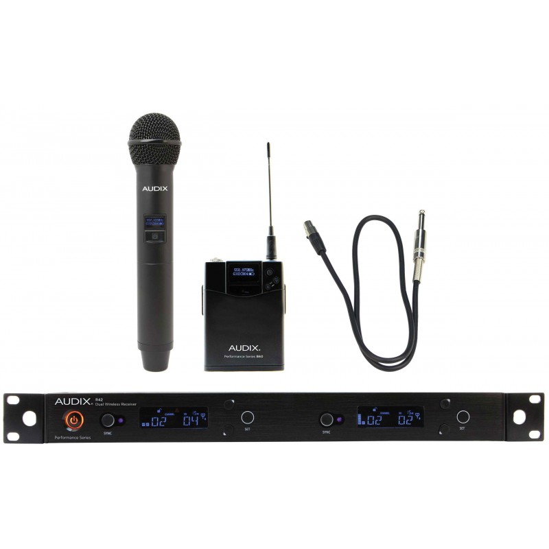 Sistema radiomicrofono VHS. Ricevitore Diversity di due canali R42, Trasmettitore handhel H60 / OM2e Trasmettitore Bodypack B60 Progettato per luso simultaneo, questa la soluzione wireless perfetta per un...