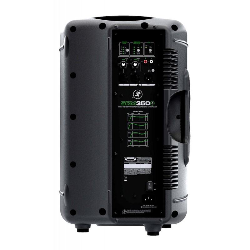Mackie SRM350v3 cassa acustica attiva. Potenza: picco 1000W. Risposta in frequenza: (-3 dB) 47 Hz - 20 kHz, (-10 dB) 42 Hz - 23 kHz. Picco massimo SPL: 126 dB. Punto di crossover: 3 kHz. Tweeter da 1.4 'con diaframma...