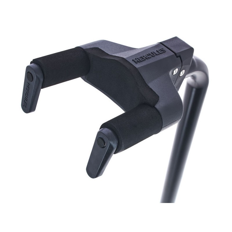 HCGS-412B+ Supporto per Chitarra/Basso AGS+ AGS Auto Grip System Plus Blocco Regolazione Altezza Istantanea N.I.N.A. Narrow Instrument Neck Adjustment per Manico 28 - 52 mmAltezza: 85,5 - 107,5 cmPeso: 1,7 kg Raggio alla