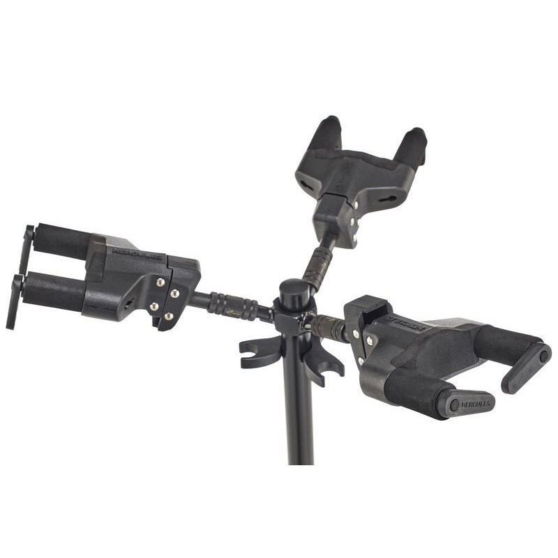 HCGS-432B+ Supporto per Chitarra/Basso AGS+ per 3 Strumenti AGS Auto Grip System Plus Blocco Regolazione Altezza Istantanea N.I.N.A. Narrow Instrument Neck Adjustment per Manico 28 - 52 mm Altezza: 90,5 - 113 cm...
