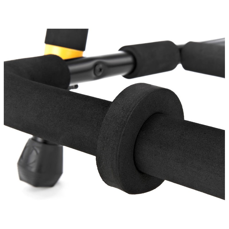 HCGS-523B Rack per Chitarre/Bassi da 3 Strumenti Include 3 Supporti 4 Alloggiamenti per Plettri su Ogni Supporto Altezza: 64 cmPeso: 3,6 kgDimensioni alla Base: 62 x 50 cm Capacitˆ di Carico: 80 kgDimensioni Piegato