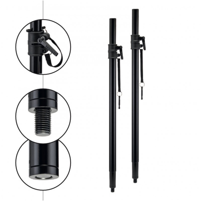 HCSS-350BB Coppia di Pali per Subwoofer Adattatore connessione M20 e 35mm Materiale: Acciaio Lunghezza: 88,9 - 142,2 cmPeso: 2,1kg Capacitˆ di Carico: 60 kgLeva Power Lock con SicuraBorsa da Trasporto Inclusa