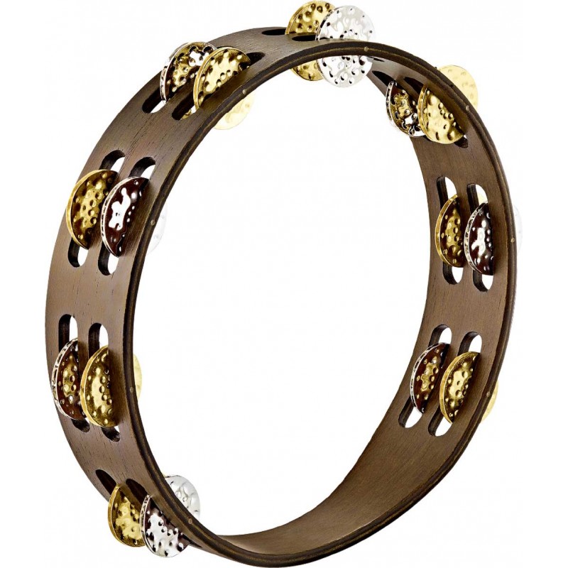 Tamburello con 2 file di sonagli in acciaio e ottone, legno africano in finitura marrone. Il tamburello a mano meinl TA1VM-WB in marrone è composto da un telaio in legno e ha otto coppie di sonagli in...