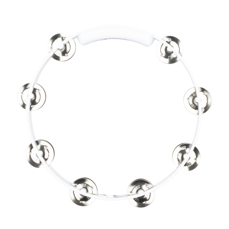 'Impugnatura ergonomica per massimo comfortMisura: 10''Suono dei jingle brillante16 paia di jingles in acciaio in doppia filaCornice in ABSColore: BiancoRealizzati con una cornice sintetica resistente agli agenti atmosfe