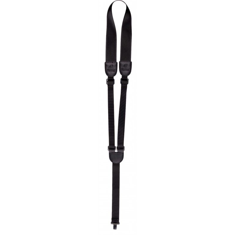 Tracolla colore nero. Con gancio per buca dello strumento. Sistema di regolazione per posizione e allineamento. Ideale per chitarre senza ganci per tracolle. Misure: 37 x 1000 mm max.