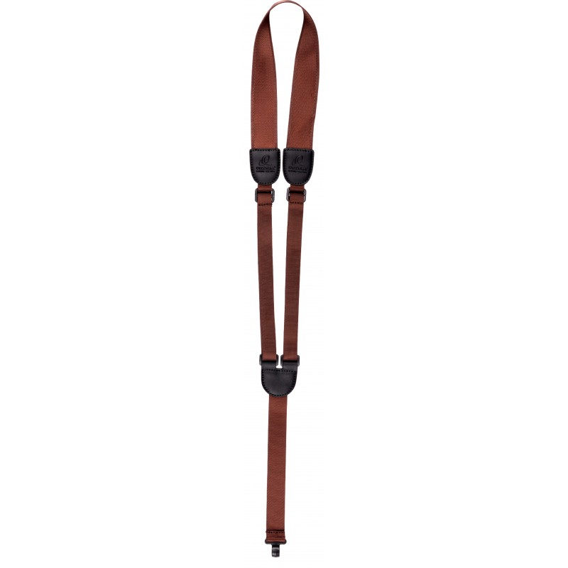 Tracolla colore marrone. Con gancio per buca dello strumento. Sistema di regolazione per posizione e allineamento. Ideale per chitarre senza ganci per tracolle. Misure: 37 x 1000 mm max.