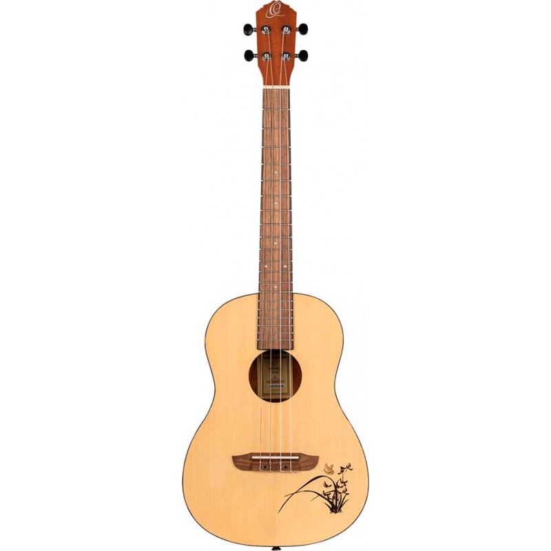 Ukulele baritono. Top in abete, fasce e fondo sapele. Manico in mogano, tastiera Sonokelin. Pressofusione