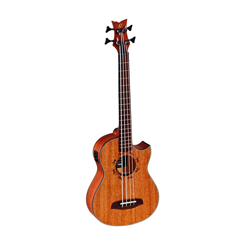 'Ukulele basso elettico acustico FRETLESS scala lunga 4 corde LIZZY-PRO Lizard Serie. Corpo e manico in mogano con TrusRoad, top in mogano massiccio inciso a laser con disegno ''lucertola'', tastiera e ponte in legno...
