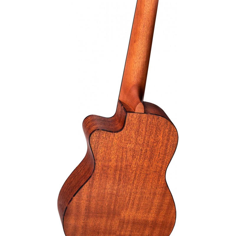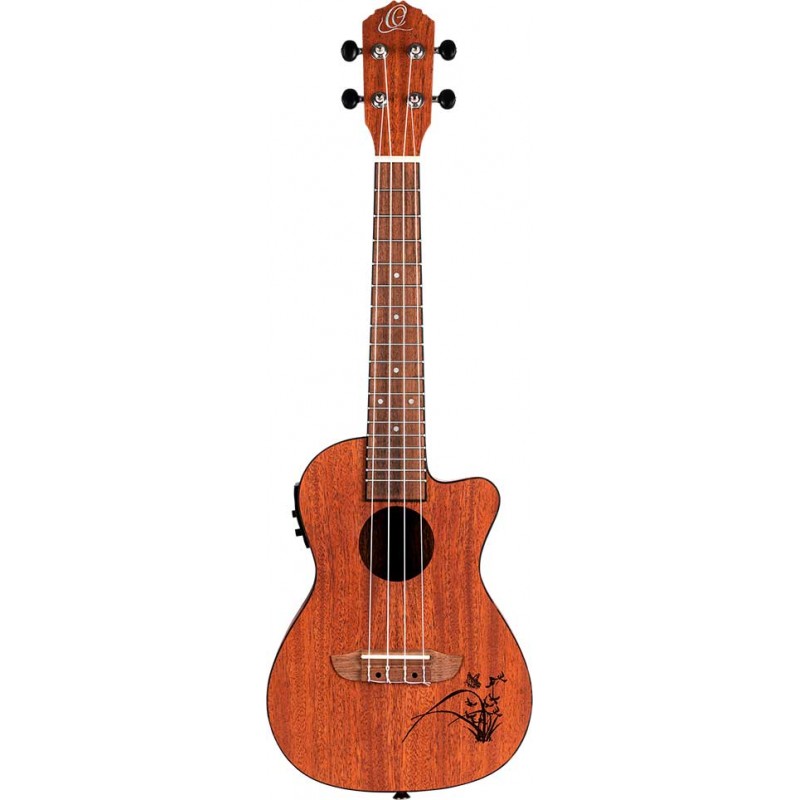 Ukulele Concerto, elettrificato e con spalla mancante. Top, fasce e fondo in mogano. Manico in mogano, tastiera Sonokelin.