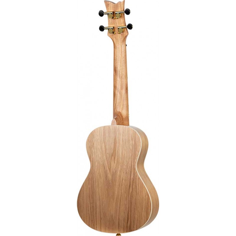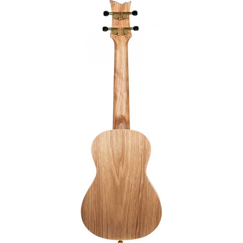 'La serie Element Concert Ukeleles è davvero abbagliante! Arrivano su un coperchio metallico rosso, blu, verde o nero con rivestimento abbinato e la bellissima incrostazione di ''elemento'' sulla tastiera.'