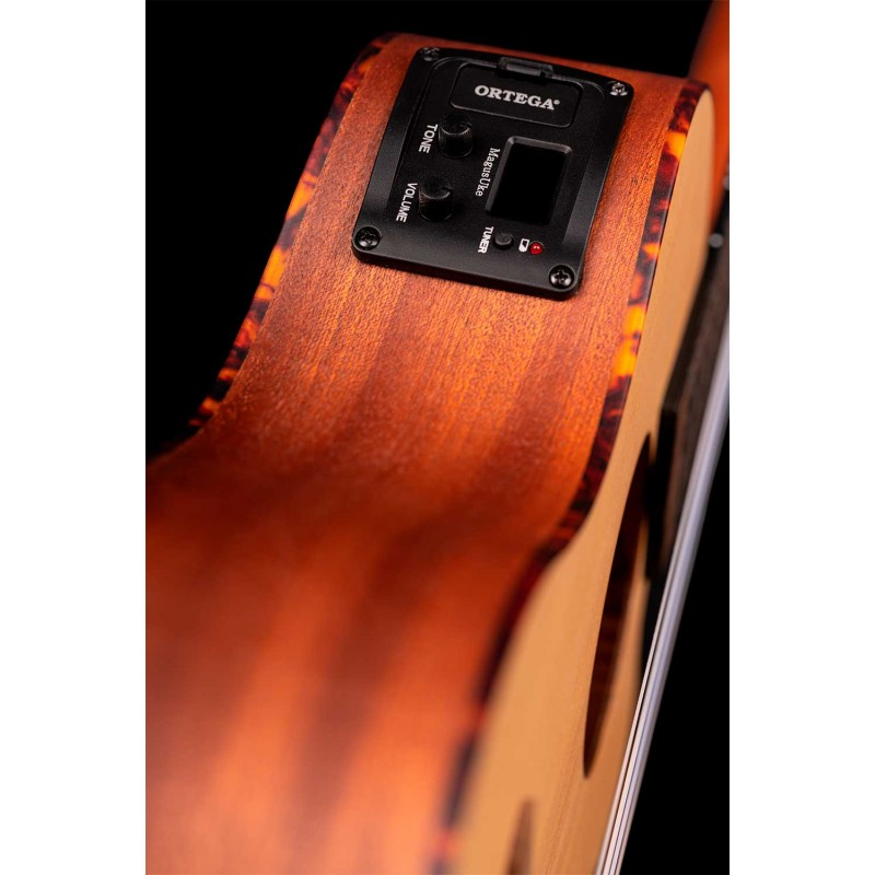 Ukulele Tenore Spalla mancante. Top in abete, fasce e fondo sapele. Manico in mogano, tastiera Sonokelin. Accordatore diecast, Preamplificatore Magus Uke.