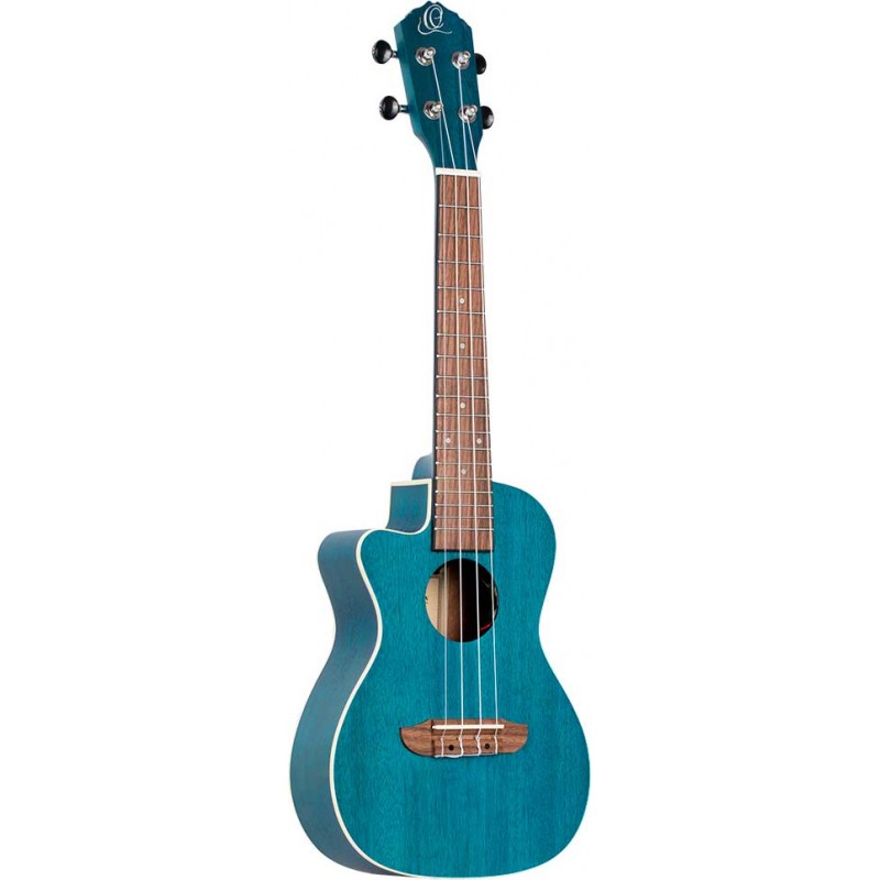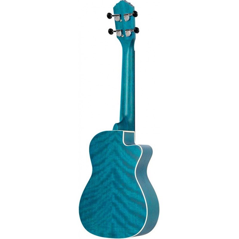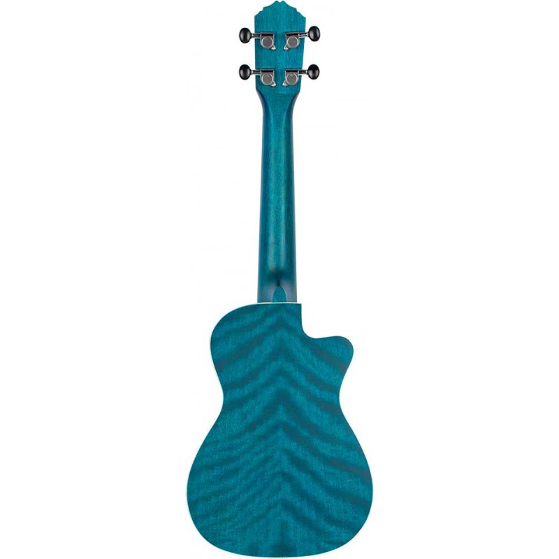 Ukulele concerto cutaway elettrificato per MANCINI. Top, fasce e fondo in okume. Manico in caoba con tastiera in Sonokelin. Finitita azzurro satinato.