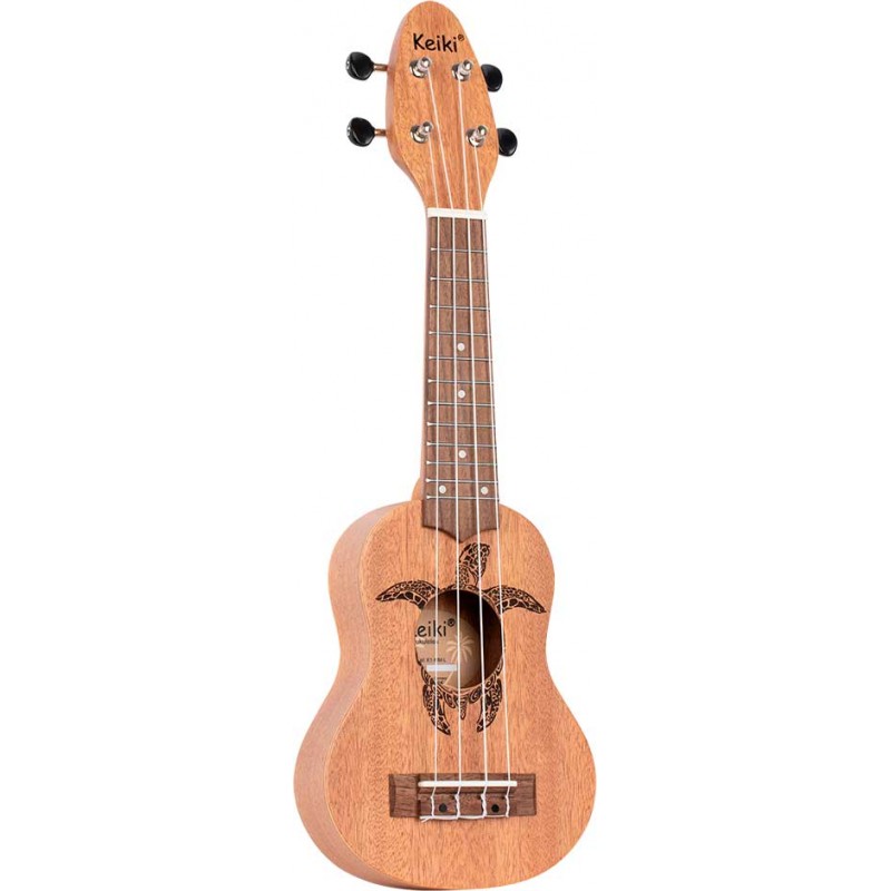Ukulele Sopranino Keiki K1-MM per MANCINI. (più piccolo del soprano, scala 248mm). Finitura satinata in caoba. Corpo e manico in okume, tastiera e ponte in nogal. Top in okume con incisione a laser di una tartaruga....