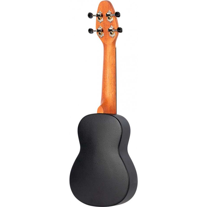 Ukulele pack soprano MANCINO + accordatore + strap + plettri + borsa per il trasporto. Ukulele con ponte, tastiera e corpo arcuato in fibra. Piano in legno acero
