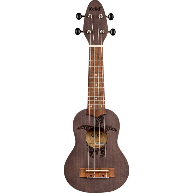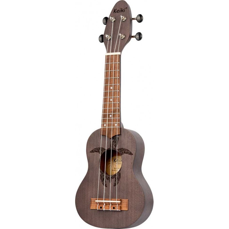 Ukulele Sopranino Keiki K1-MM. (più piccolo del soprano, scala 248mm). Finitura in carbone satinato. Corpo e manico in okume, tastiera e ponte in nogal. Top in okume con incisione a laser di una tartaruga. Meccaniche...