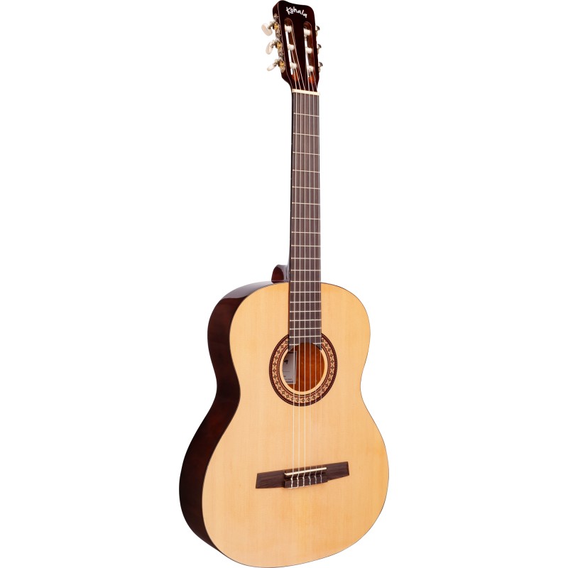'Chitarra classica 4/4Corpo in Abete LaminatoFondo e Fasce in OkoumeLunghezza Totale: 39''Profondità Corpo: 3,7''Spalle: 11,1''Vita: 9,5''Fianchi: 14,6''Larghezza al Capo: 52mmTastiera in PioppoTasti: 18