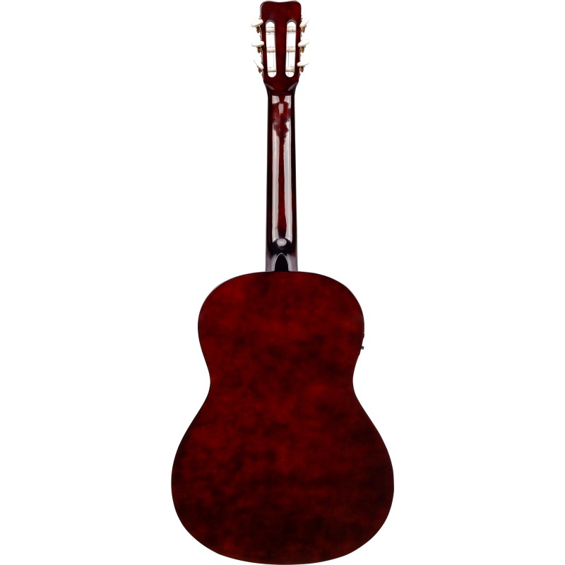 'Chitarra classica amplificata 4/4 Preamp con EQ/tone ed accordatoreCorpo in Abete LaminatoFondo e Fasce in OkoumeLunghezza Totale: 39''Profondità Corpo: 3,7''Spalle: 11,1''Vita: 9,5''Fianchi: 14,6''Larghezza a