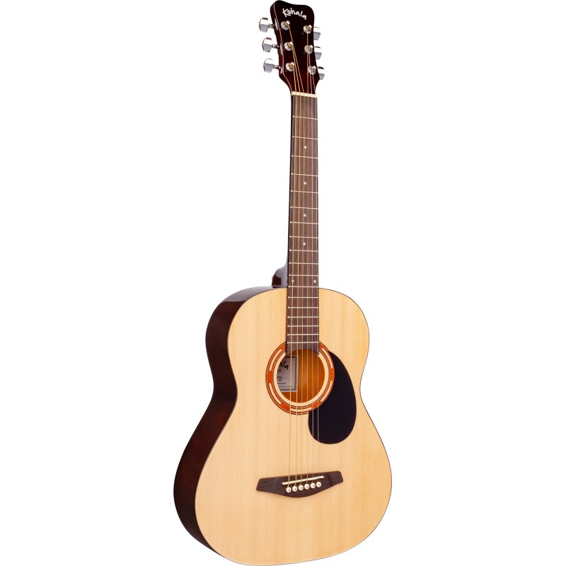 'Chitarra acustica 3/4 Corpo in Abete LaminatoFondo e Fasce in BasswoodLunghezza Totale: 34''Profondità Corpo: 3,4''Spalle: 9,7''Vita: 8,5''Fianchi: 13,4''Larghezza al Capo: 43mmTastiera in PioppoTasti: 18