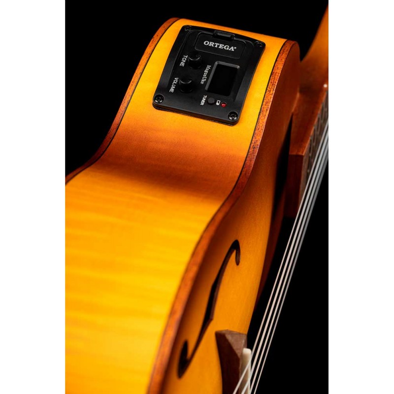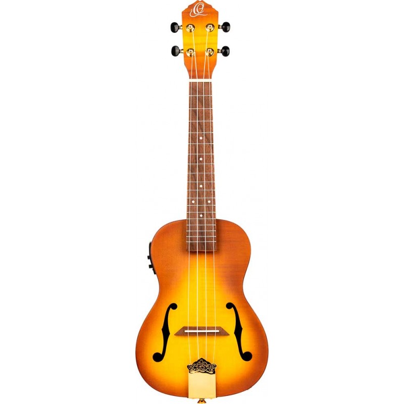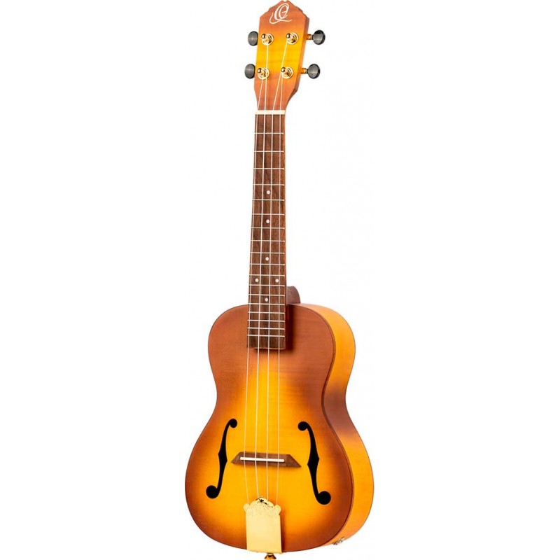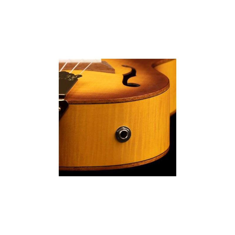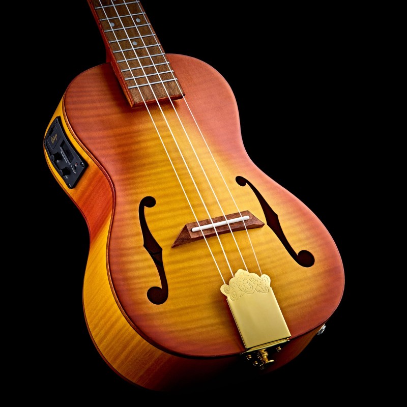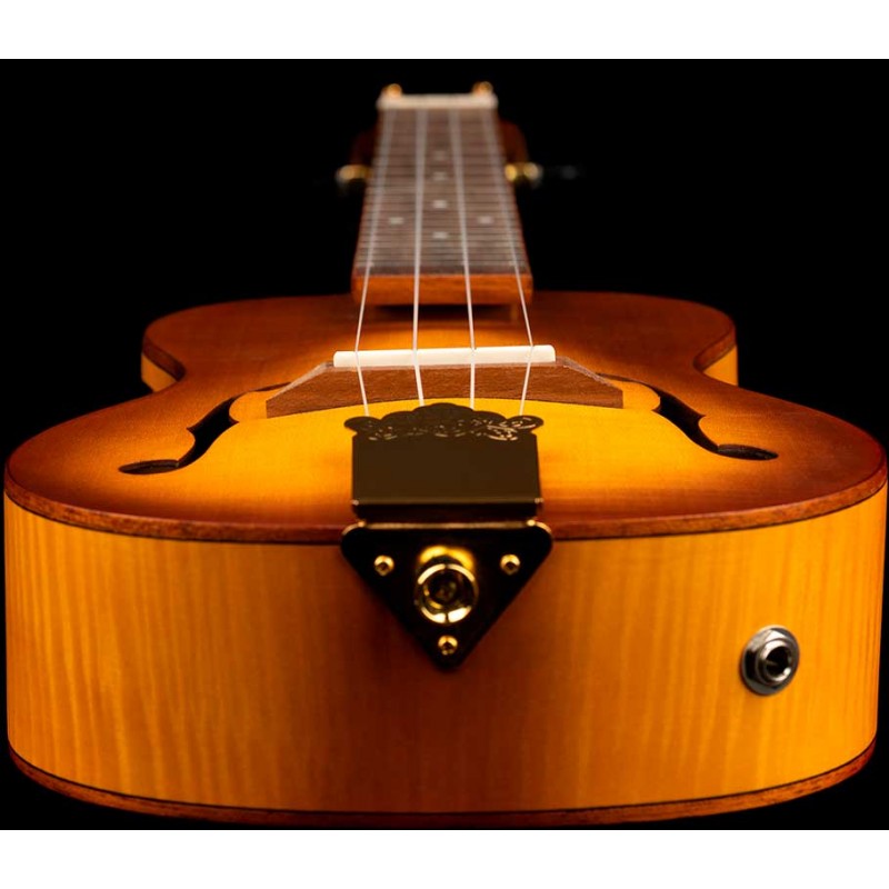 Ukulele elettroc acustico stile archtop misura concerto RUSL-HSB Saloon Series. Corpo in acero fiammato, top curvo con bocche a F in acero fiammato, back curvo in acero fiammato, tastiera in nogal, ponte stile...