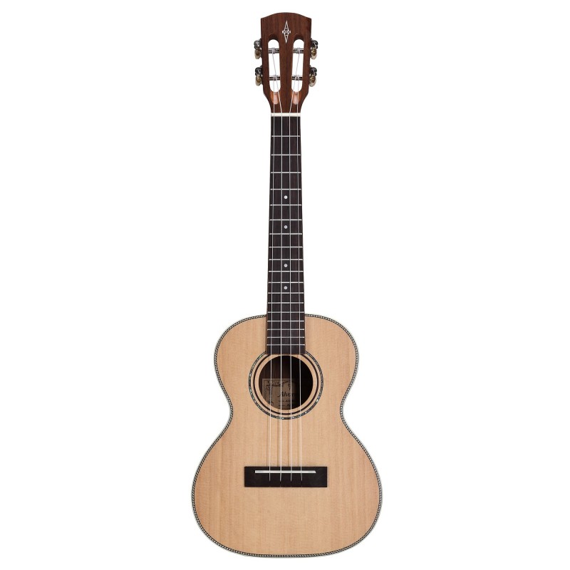 Ukulele Tenore. Tavola in abete Sitka A. Fasce e fondo in noce nero. Manico in mogano. Tastiera in palissandro. Sella e ponticello in osso vero. Ponte in palissandro. 18 tasti. Corde Aquila Nylgut. Scala 430 mm....