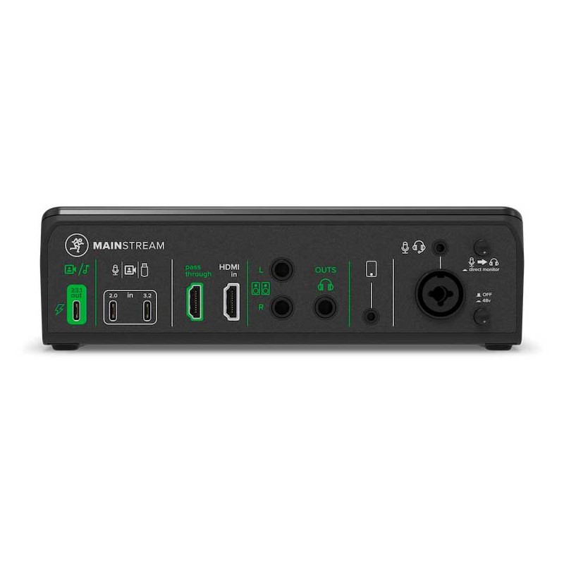 Mackie senza un audio analogico di alta qualità? Oltre all'ingresso principale per microfono (+60 dB), MainStream include un ingresso cuffie per chat, un ingresso smartphone per telefonate in live streaming, un'uscita per cuffie e uscite di linea stereo perfette per gli altoparlanti.